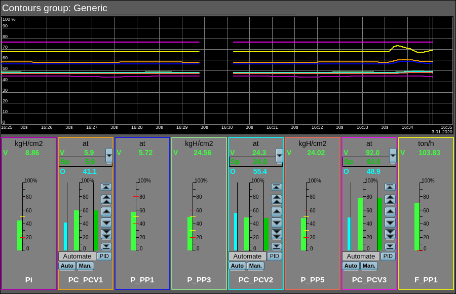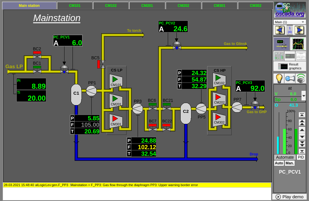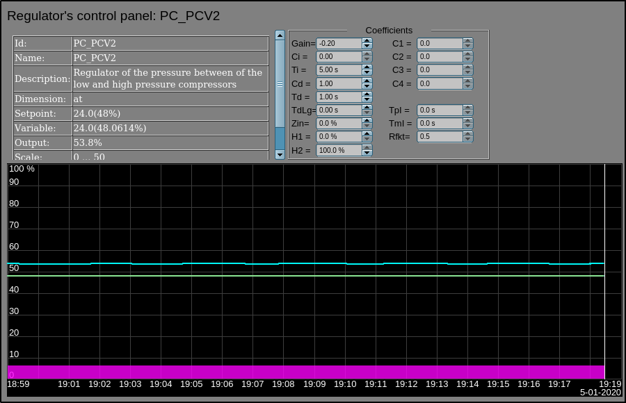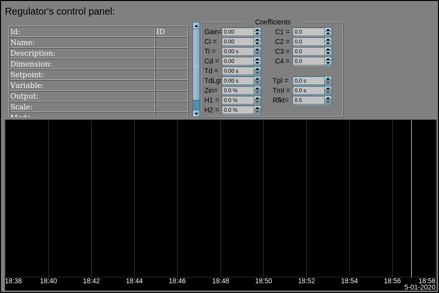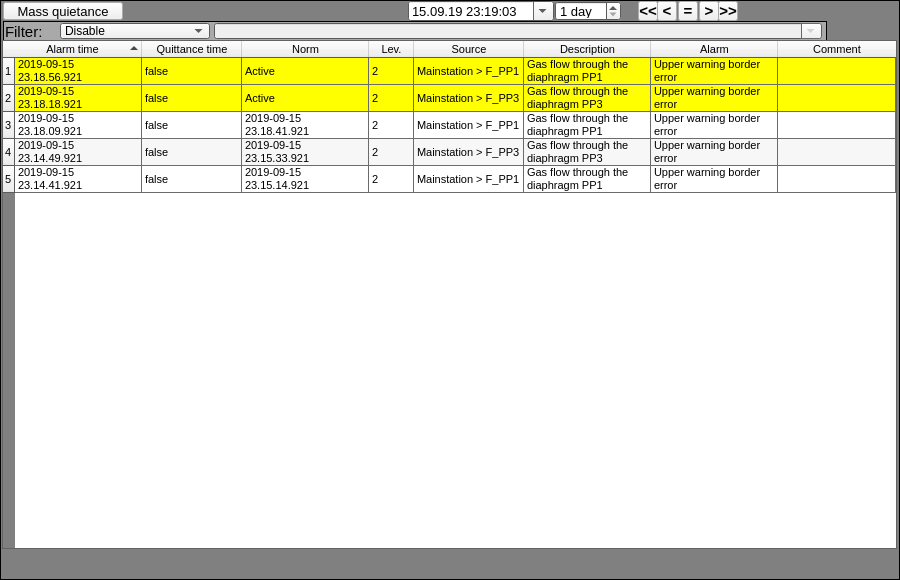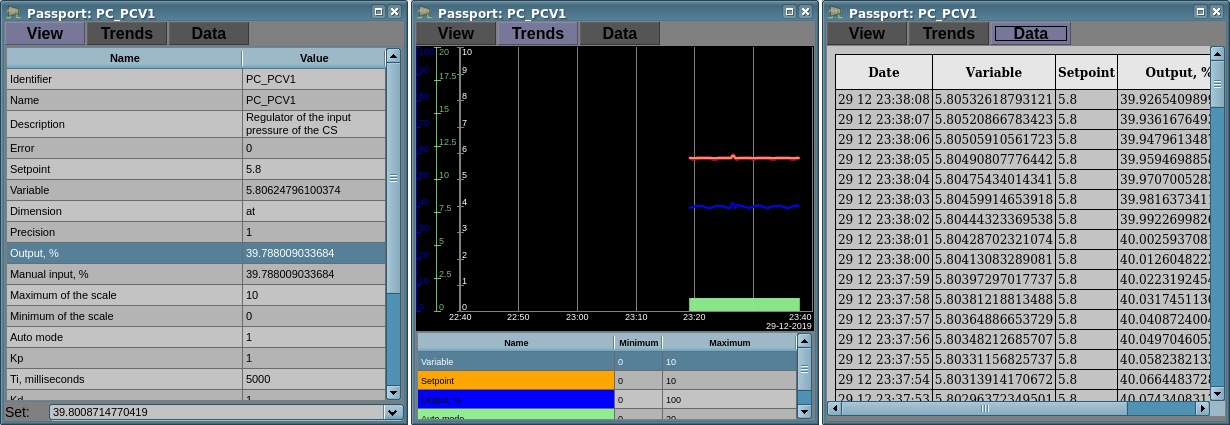 Every action on this panel (change of PID-regulator set-point, state of the discrete parameter, ...) is recorded in the actions log by the generation of appropriate messages according to the message structure of the operator actions.