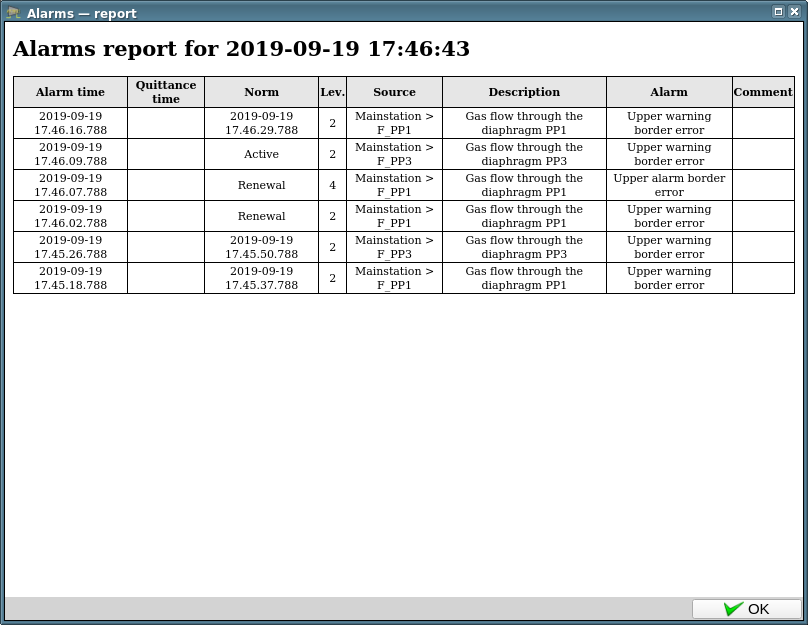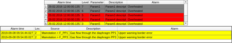 The element in Figure 1.5 serves to dynamically display the active violations in a tabular form and to highlight them in color and text. The violations are obtained from the buffer of current-active violations of OpenSCADA. In fact, the element implements the primitive "Protocol" functions for violations and extension opportunities.