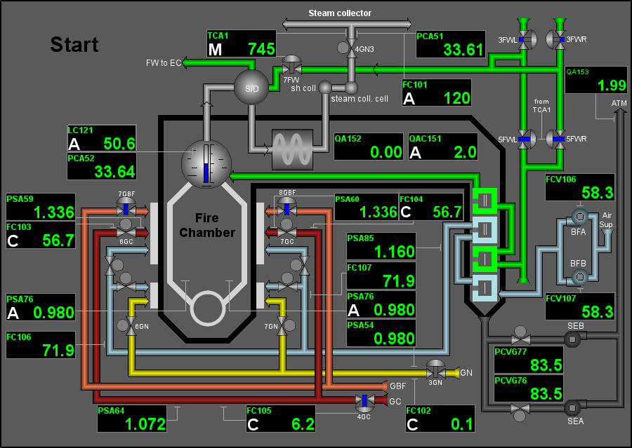 In the runtime mode, these elements look mostly the same as in the development mode because they are not dynamic. Some elements, as "Cooler 2", are dynamic but are not linked.