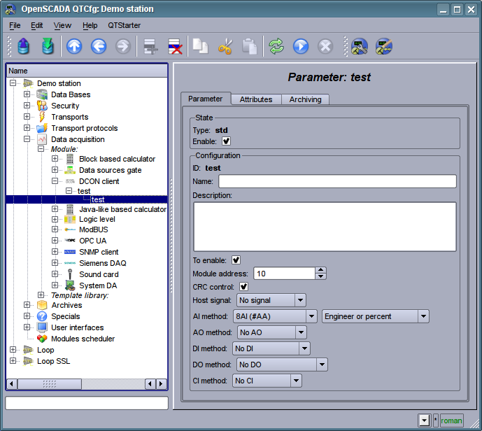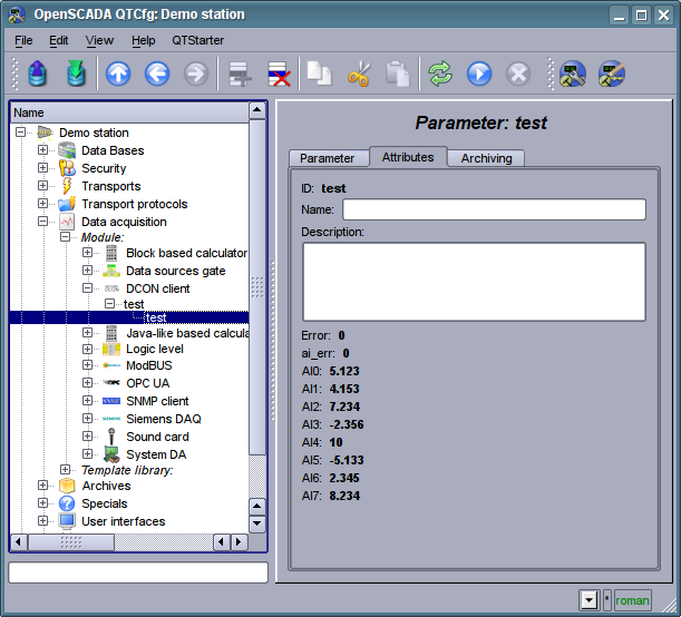 This module provides the ability of clear interrogation and record of input-output ports of devices that are compatible with ICP DAS I-7000. On the settings tabs of DCON module the necessary settings are inserted, and on the attributes tabs the corresponding to the given parameters variables of input-output appear.