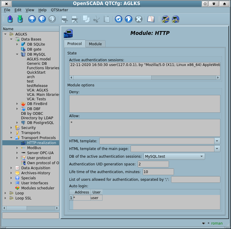 Module of the transport protocol HTTP is designed to support the implementation of the network protocol HTTP (Hypertext Transfer Protocol) in OpenSCADA.