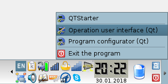 In the case of missing the starter dialog window and all windows of the Qt GUI modules, the program can be started up or collapsed to the system tray (Fig.3) created by this module.