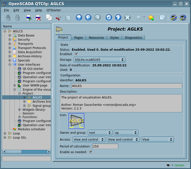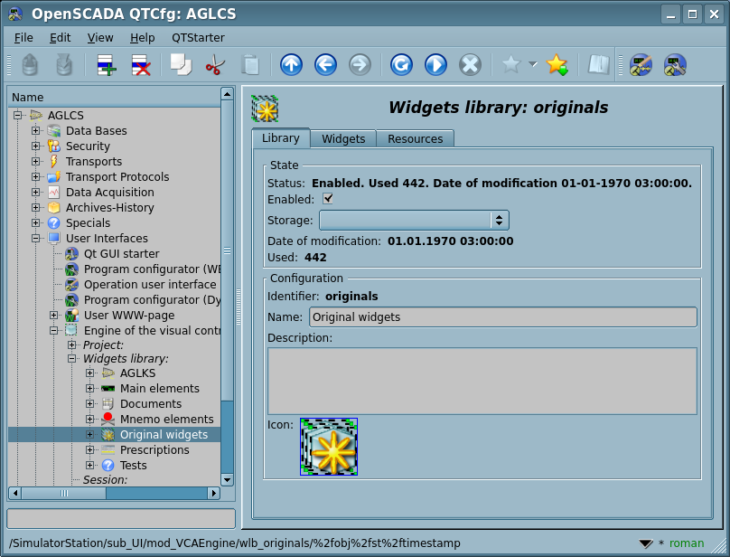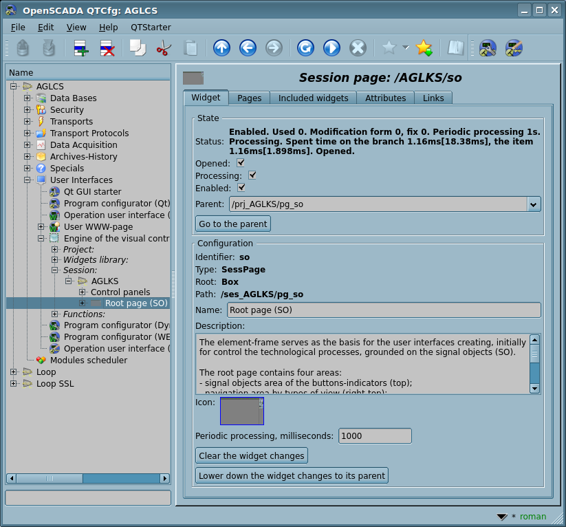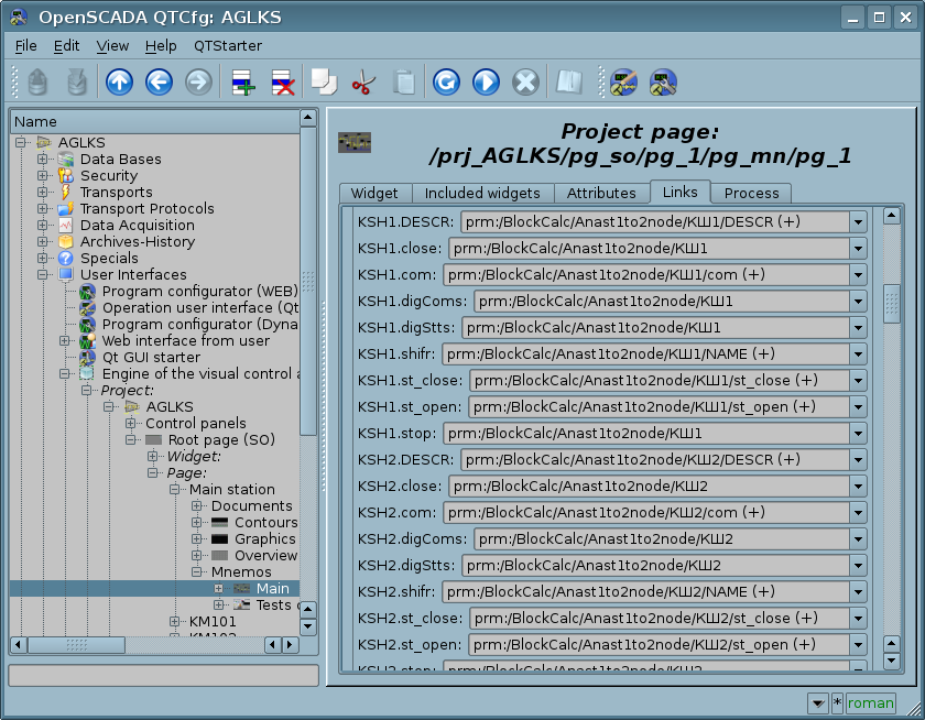 Each project includes pages from the libraries of the frames/widgets. For a number of modes, the page itself may include nested pages as parent-independent and using parent as a template. The template pages-widgets allow to extremely simplify the process of creating the same type of the frames for easy monitoring by the ACS-TP engineer or the user OpenSCADA. An example of such one-type frames may be: groups of contours, groups of graphs, reports and various summary tables. Mnemonic schemes of the technological processes rarely fall under such scheme and are formed on a separate page-widget.