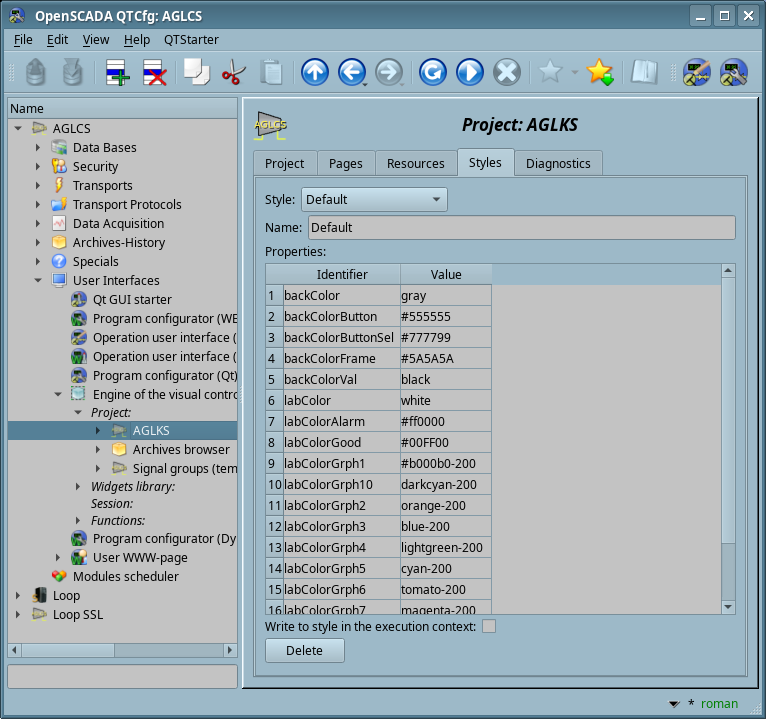 To realize this opportunity, when creating a frame, it is necessary for the properties of color, font and others set the "Configuration" (of the table in the "Process" tab) in the value of "From style". And in the parameter "Configuration template" to specify the identifier of the style field. Next, this field will automatically appear in the style manager and can be modified there. The style manager is available on the project configuration page in the tab "Styles". In this tab, you can the styles create, delete and edit, delete their fields.