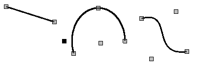 Fig.5.2.b. Examples of the primitives, from left to right: line, arc and Bézier curve.
