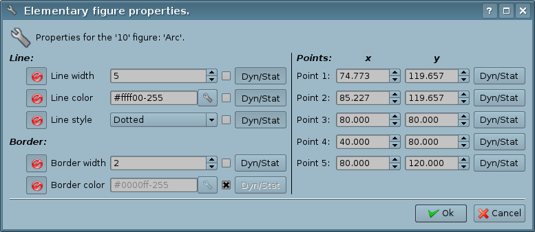 Fig.5.5.a. Properties dialog of the elementary figure for single figure (line, arc or a Bézier curve).