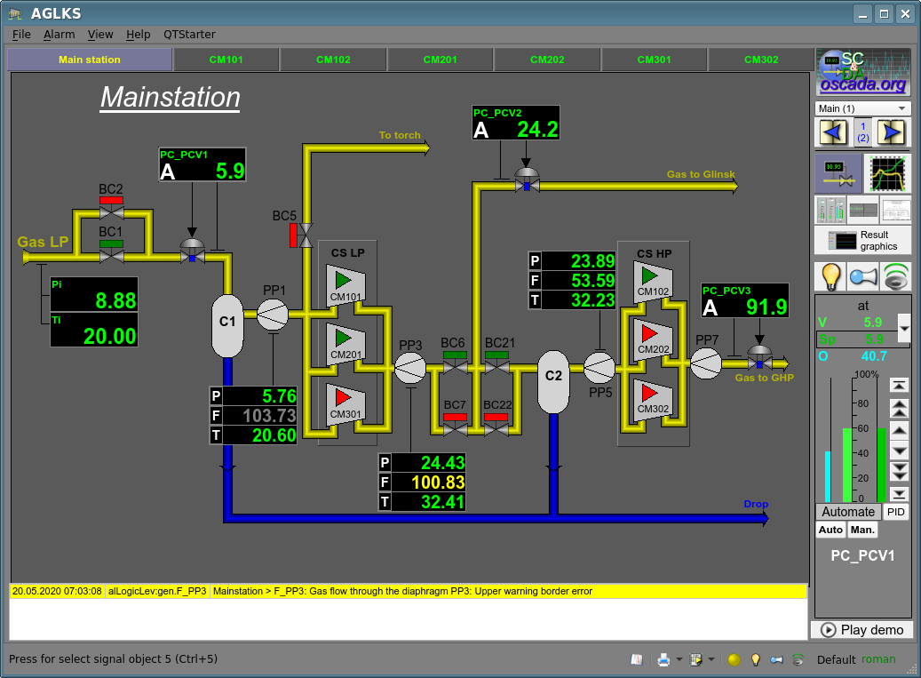 The module provides to OpenSCADA a mechanism of the final visualization of the visualization and control area (VCA). The module is based on the multi-platform library Qt of the graphical user interface (GUI) of initially created by the firm TrollTech. In its work, the module uses the data of the VCA engine — module VCAEngine).