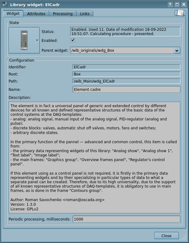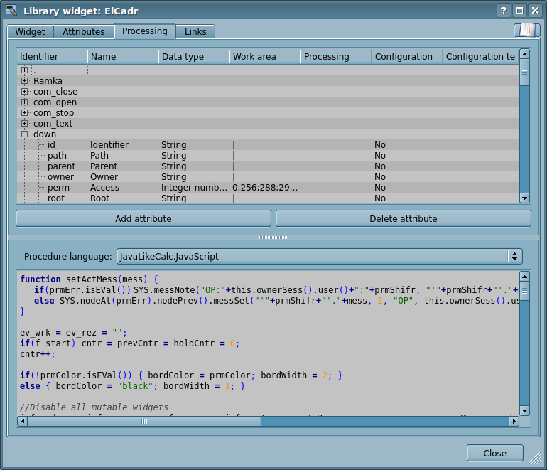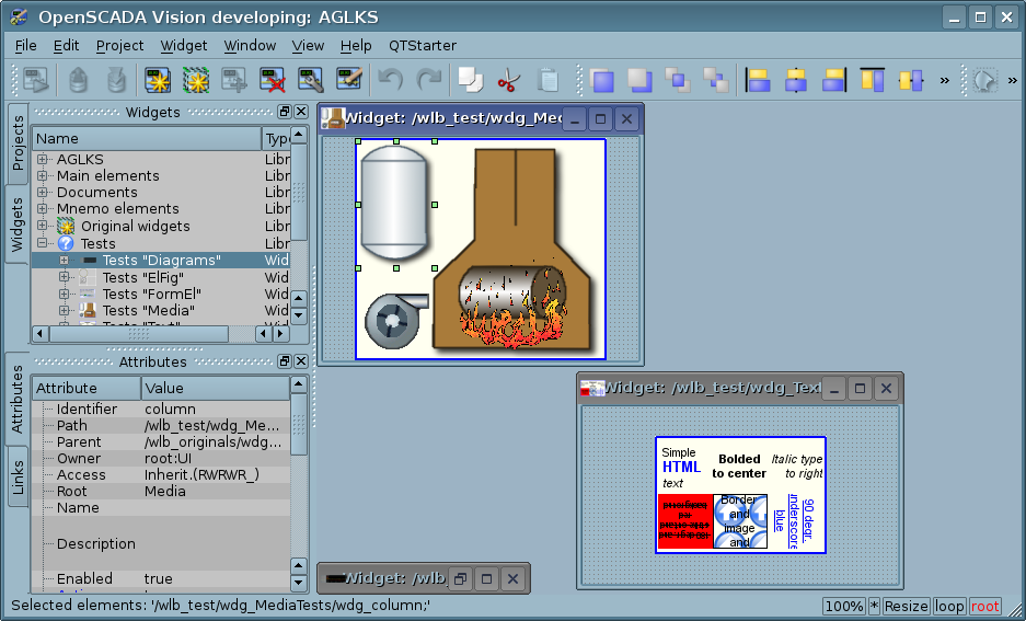 - possibility of inclusion, to the user's visualization elements, the functions (or frames of functions' calculation) of the object model of OpenSCADA, practically linking the presentation with the algorithm of computation, for example, visualizing the library of the apparatus of TP models for subsequent visual building of the TP models;