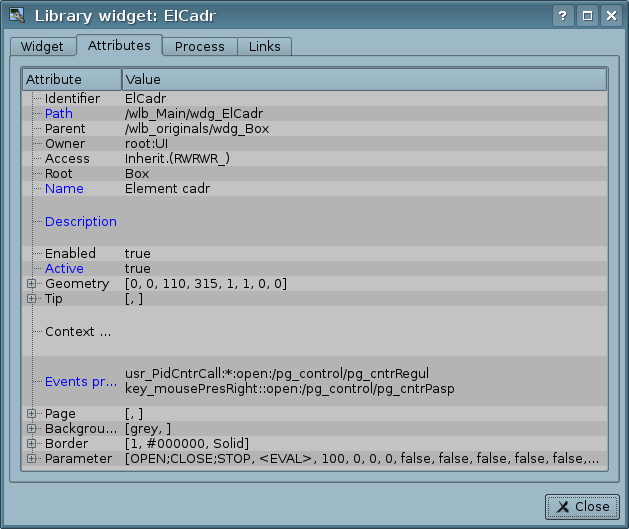 - Control panel of the widget attributes;