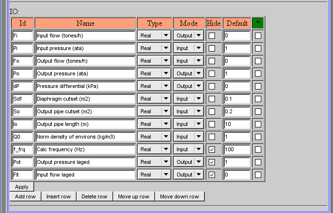 Tables contain values of basic elements. Type of the basic element is defined separately for each column. Example of the table is shown in Figure 6.