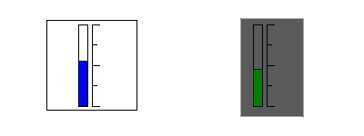 В режиме исполнения, в основном поле элемента, отображается полоса гистограммы, которая соответствует аналоговому значению.