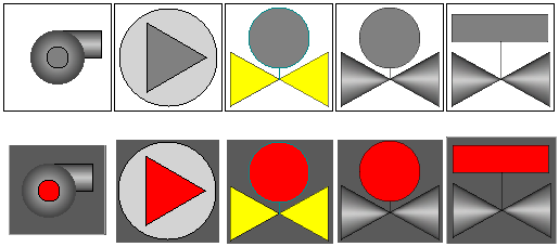 Элементы на рисунке 2.2 используются для отображения статуса аналогових аппаратов и предназначены для использования в трубопроводах. Элементы в целом используют и репрезентуют структуру DAQ-шаблона аналоговых ПИД-регуляторов в различных визуальных вариантах.