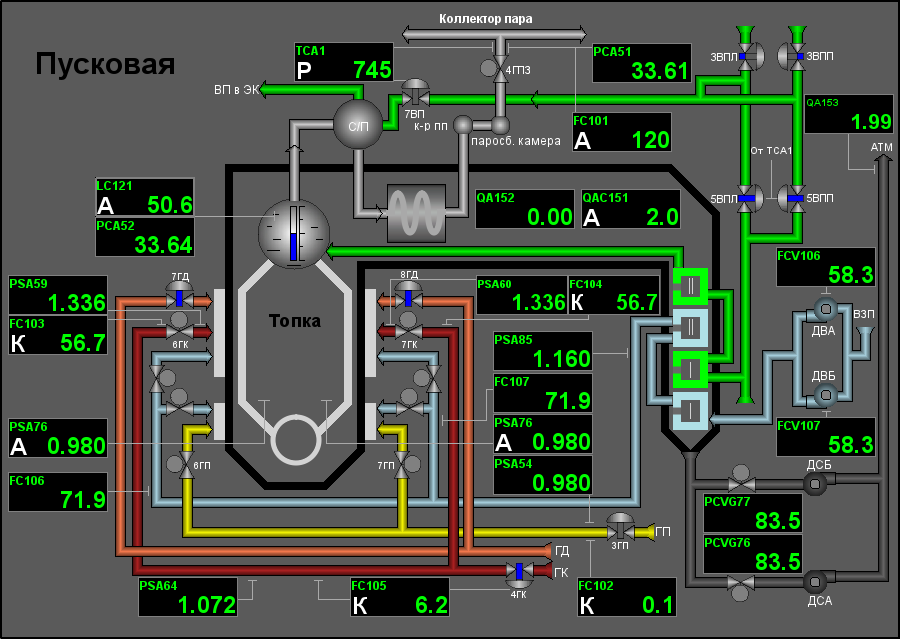 В режиме исполнения, в основном поле элементов, отображается символический образ аппарата с динамическим сигналом, который соответствует значению аналогового параметра.