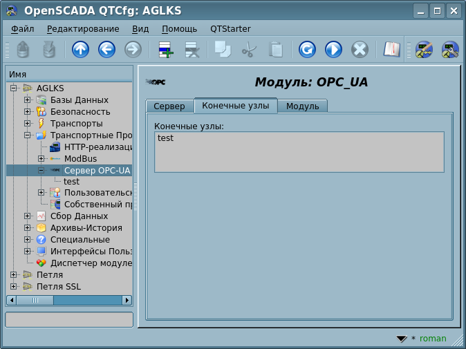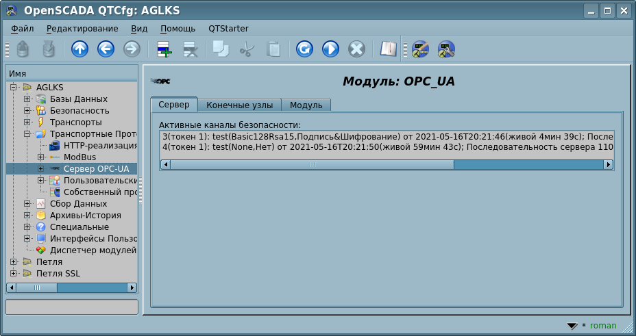 Данный модуль реализует поддержку интерфейса и протокола OPC-UA как в виде клиентского сервиса, так и в виде сервера OPC-UA. Клиентский сервис OPC-UA реализуется одноимённым модулем подсистемы "Сбор данных", а сервер реализуется модулем подсистемы "Протоколы". Весь код реализации этим модулем специфики протокола OPC-UA был вынесен, по просьбе пользователей, в отдельную библиотеку, которая распространяется под лицензией LGPL3.