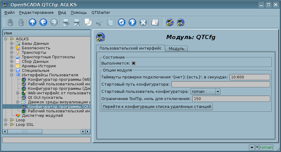 Предоставляет основанный на Qt конфигуратор OpenSCADA.
