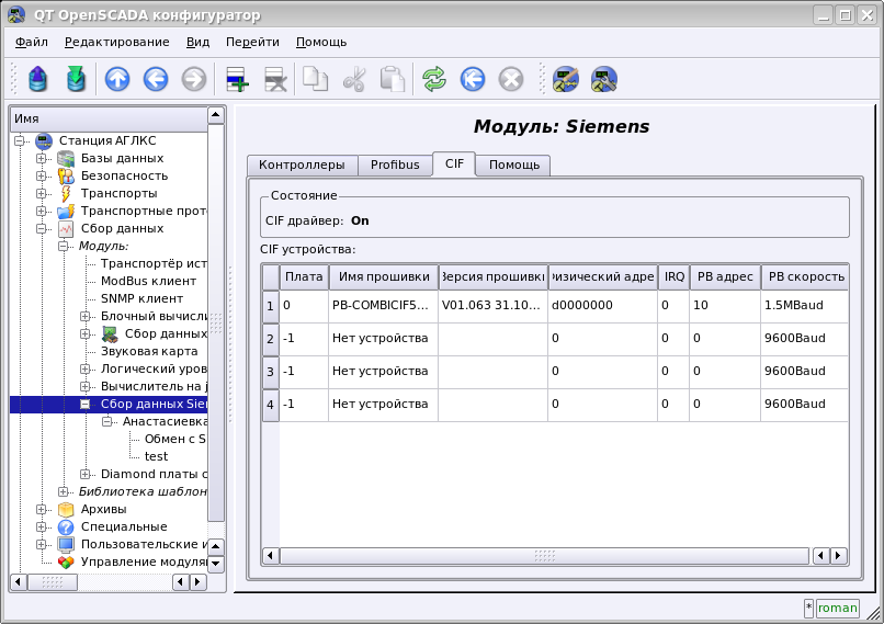 Драйвером плат семейства CIF поддерживается возможность установки до 4 CIF плат. С целью контроля за наличием плат в системе и возможности их конфигурации, модуль содержит форму контроля и конфигурации CIF-плат (рис.1).