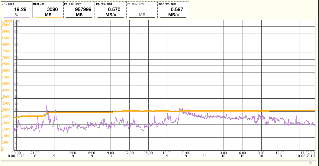Debian 10 i386, GLibC 2.28, GCC 8.3.0 | 151 | 158 | 162.5 | 166 | 166 | 166 | Satiated on the iteration 3, base consumption 7 MB, extra consumption 8 MB (114 %), liboscada.so 3.7 MB, ui_WebVision.so 0.9 MB | |