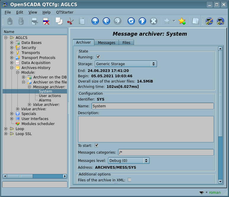 Любая SCADA система должна предоставлять возможность архивации собранных данных, т.е. формирование истории изменения (динамики) процесса. Архивы условно можно разделить на два типа: архивы сообщений и архивы значений.