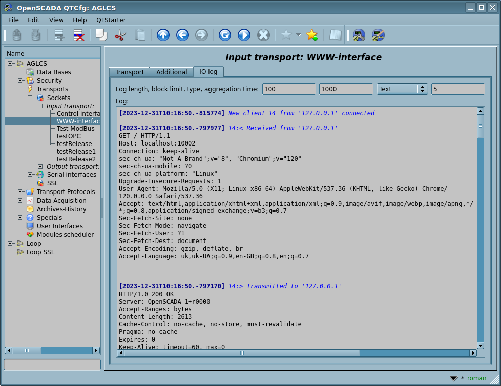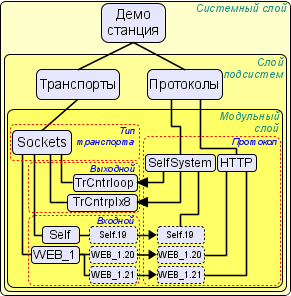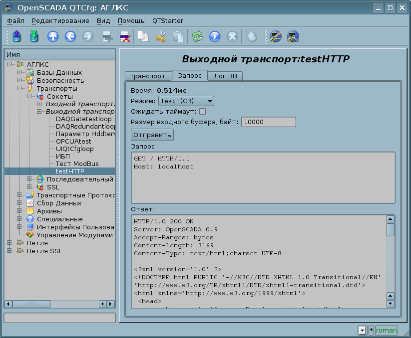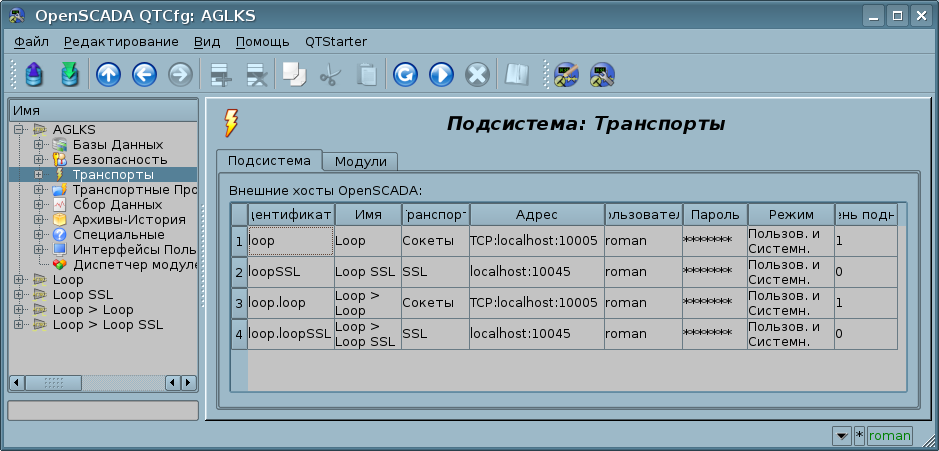 Поскольку OpenSCADA является высоко-масштабируемой то поддержка коммуникаций должна быть достаточно гибкой, для чего она реализована в подсистемах "Транспорты" и "Транспортные протоколы" (Рис.1.6), которые являются модульными.
