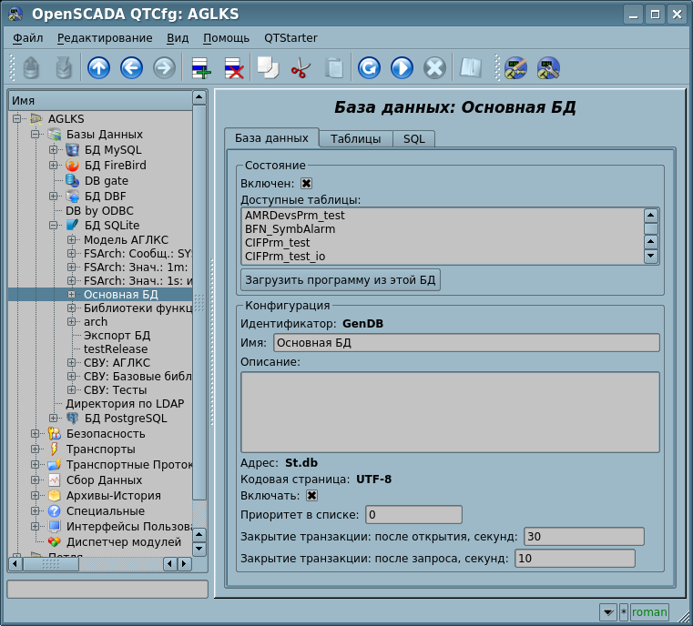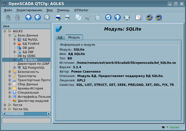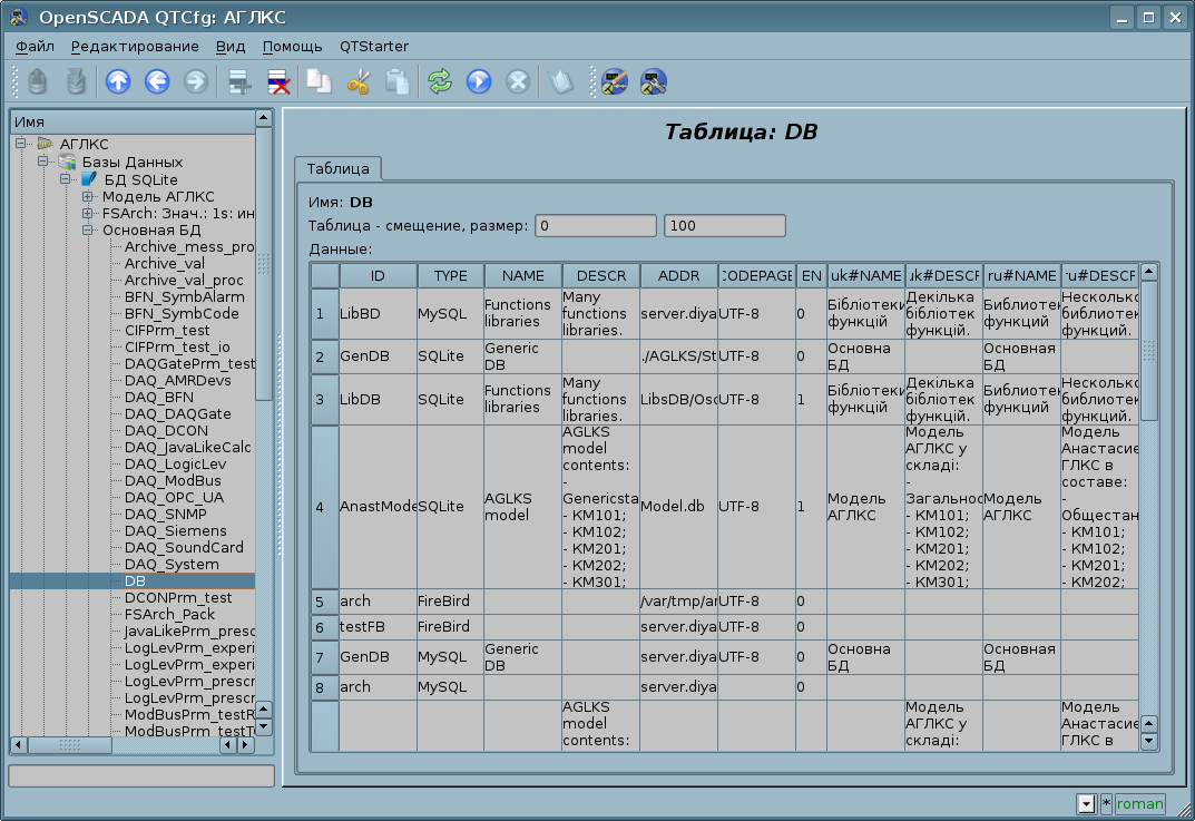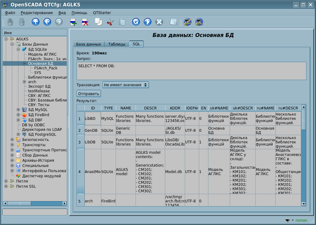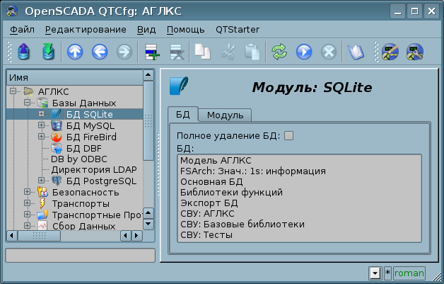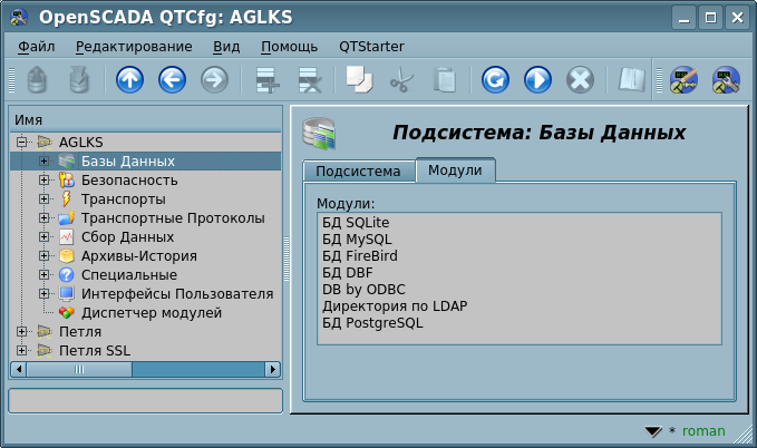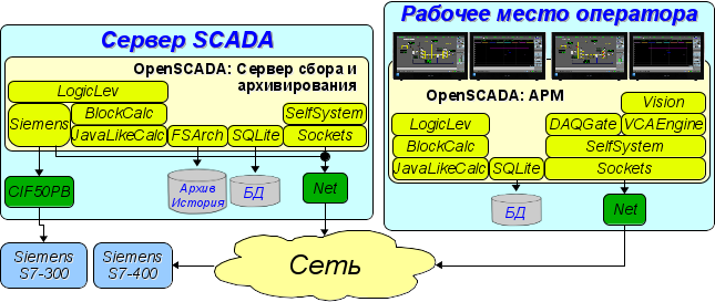 Учитывая модульность подсистемы "БД", БД могут быть различными. Причем предоставляется возможность сохранения различных частей OpenSCADA как в разных БД одного типа, так и в БД разных типов.
