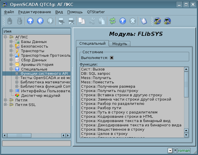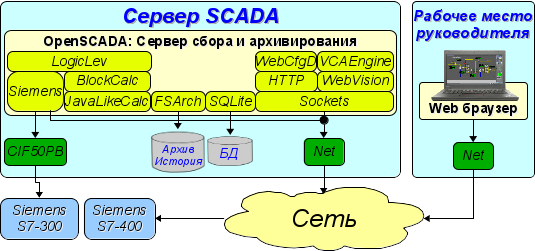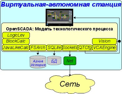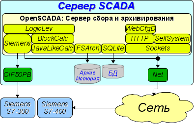 На основе модулей реализованы следующие функциональные части OpenSCADA: