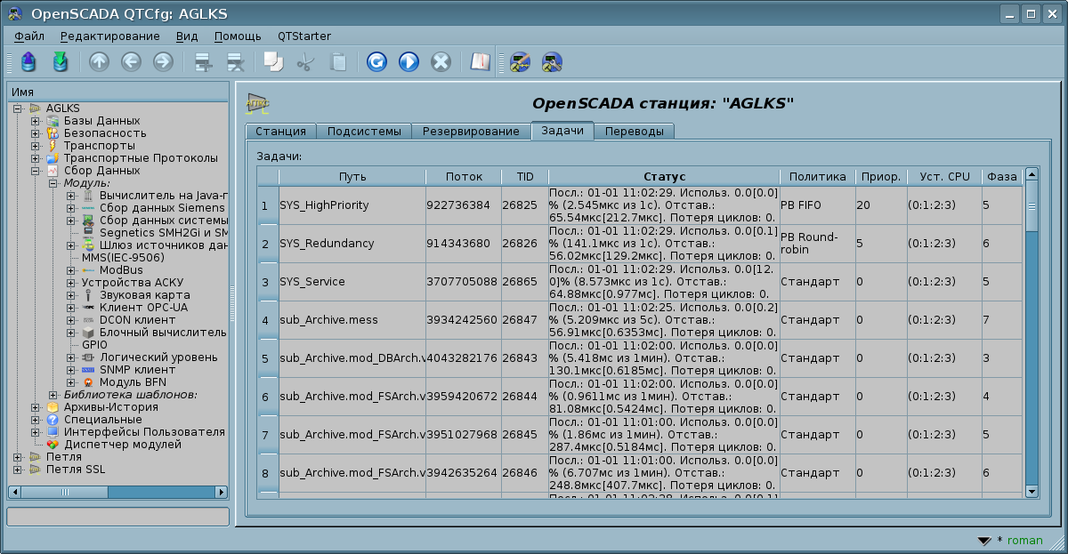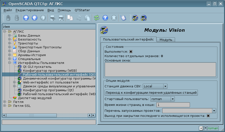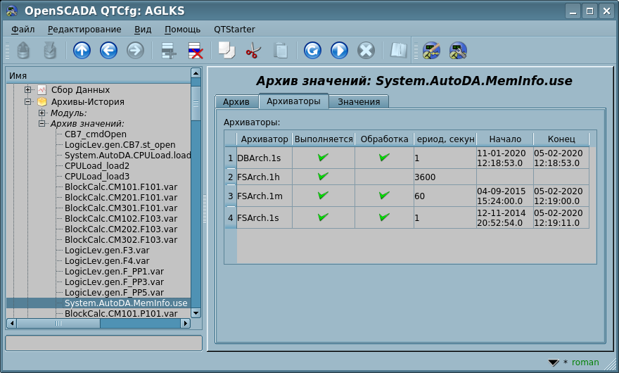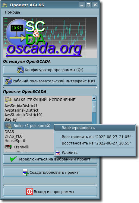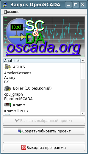 Соответственно, сейчас OpenSCADA можно запустить как в режиме демона-сервиса, так и графического интерфейса просто указав имя присутствующего проекта четырьмя способами: