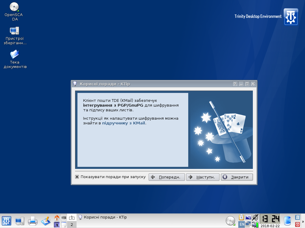 У результаті завантаження живого диска Ви отримаєте робочий стіл TDE (рис.3).