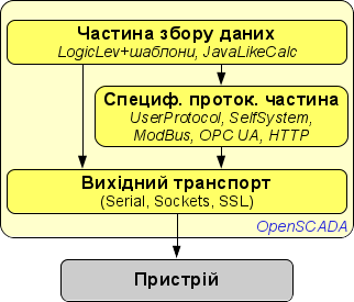 Бібліотеку пристроїв користувацьких протоколів створено для надання доступу до даних промислових пристроїв через мережу із доволі простим протоколом, на кшталт пристроїв загальнопромислової автоматики та лічильників різних ресурсів, із протоколом достатньо простим до реалізації у модулі користувацького протоколу, з використанням наявних комплексних протоколів (ModBus, OPC_UA, HTTP) або безпосередньо на внутрішній мові подібній до Java.