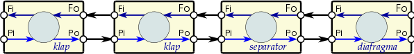 На основі функцій цієї бібліотеки можна легко та швидко будувати моделі технологічних процесів у модулі BlockCalc шляхом поєднання блоків згідно до технологічної схеми. Приклад поєднання частини апаратів технологічної схеми наведено на рисунку 1.