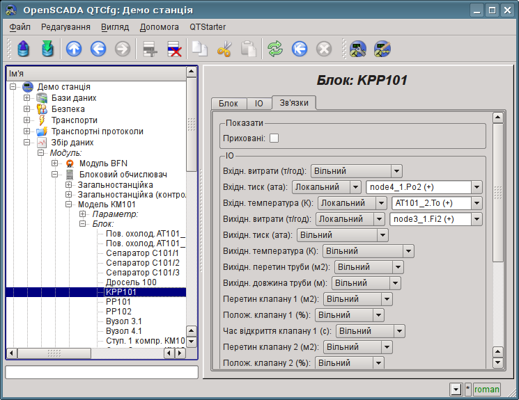Блокова схема формується за допомогою вкладки блоків контролера, конфігурації блоку (рис.4) та його зв'язків (рис.5). Блоки зберігаються у таблиці із назвою "BlckCalcBlcks_{CntrId}".