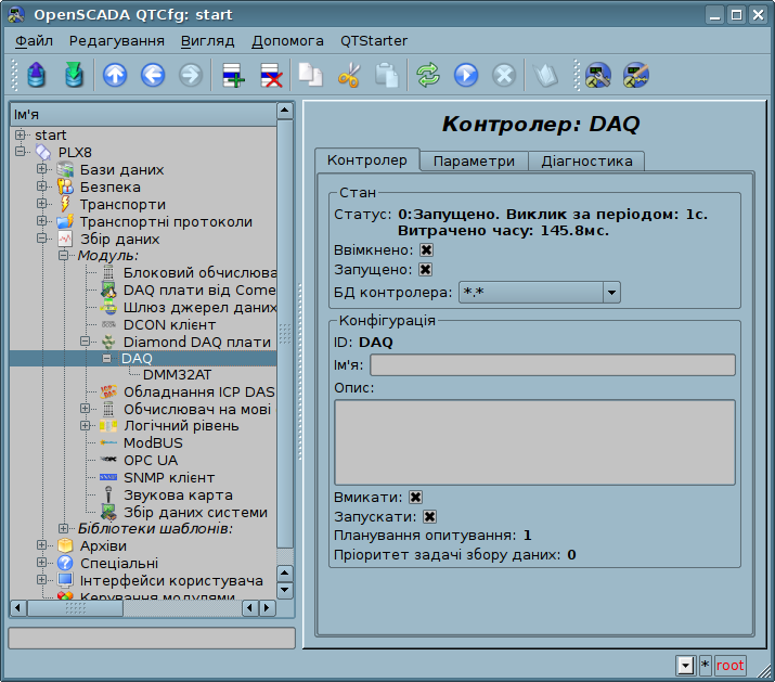 На рівні об'єкта контролеру створюється загальне для всіх плат завдання обслуговування плат-параметрів. Приклад вкладки конфігурації об'єкту контролера наведено на рис.1.