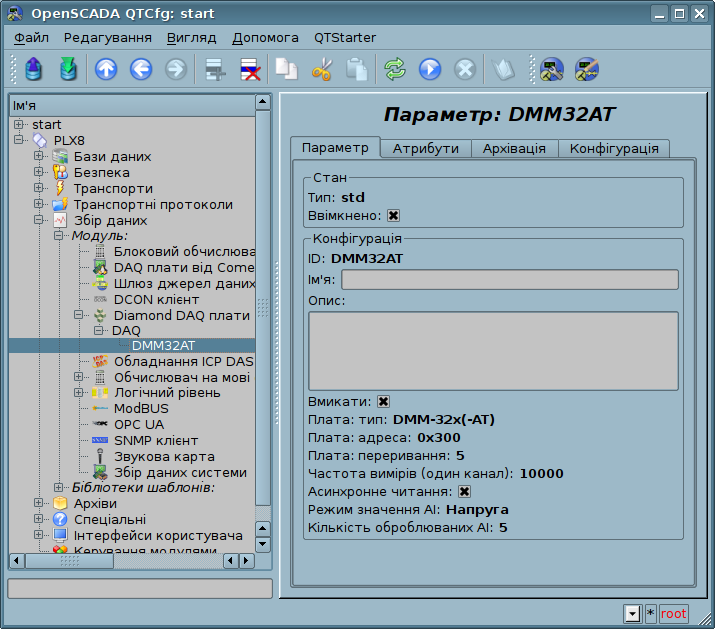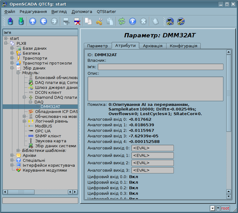 На рисунку 4 представлено приклад вкладки "Атрибути" для плати "DMM-32x-AT".