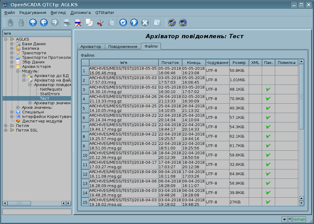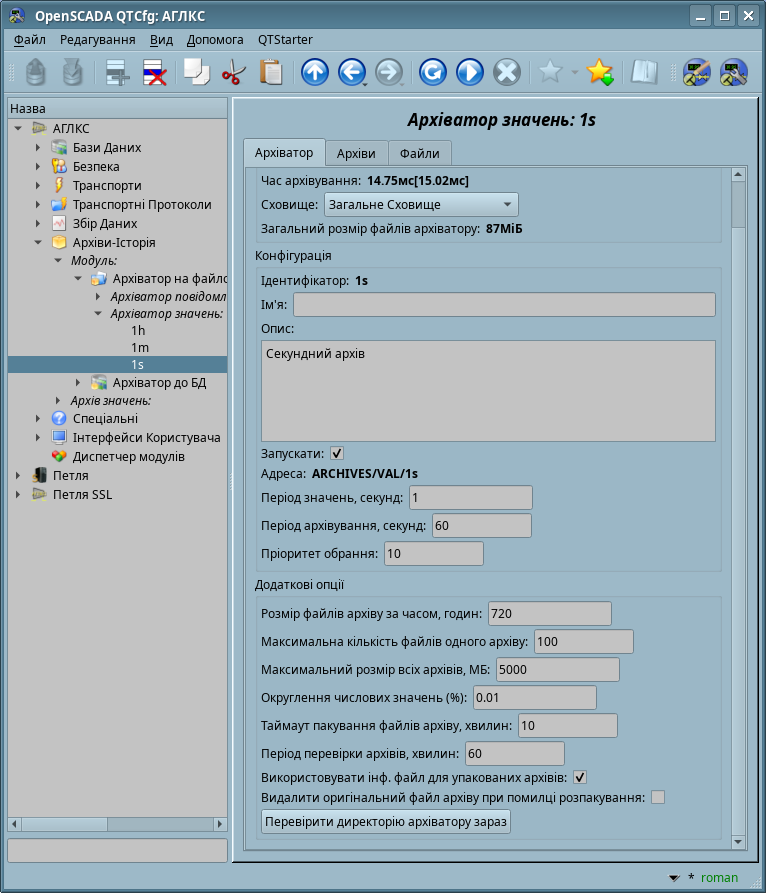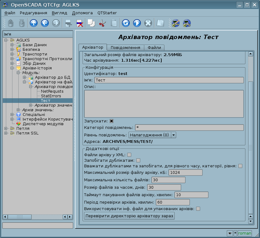 Модуль призначено для архівування повідомлень та значень OpenSCADA на файлову систему.