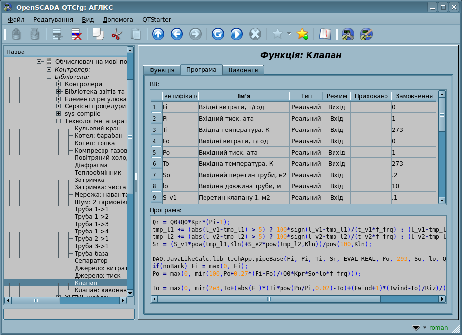 Рис.1. Вигляд редагування функцій у конфігураторі OpenSCADA.