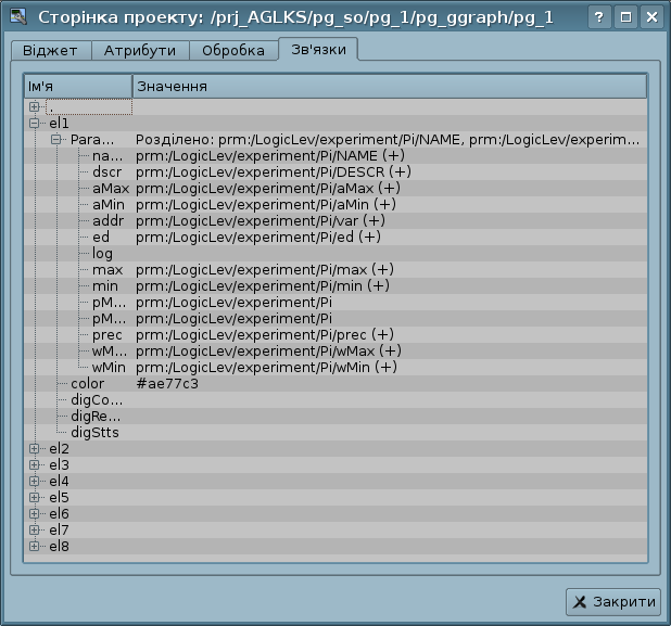 - Панель управління зовнішніми зв'язками віджетів.