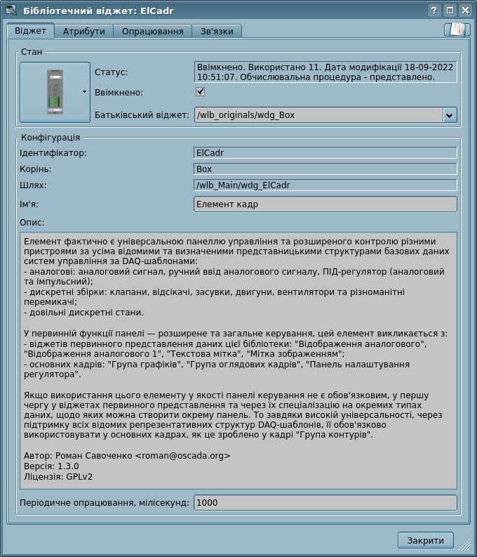 - надання, до OpenSCADA, функцій об'єктного API; може використовуватися для управління властивостями інтерфейсу візуалізації із користувацьких процедур;