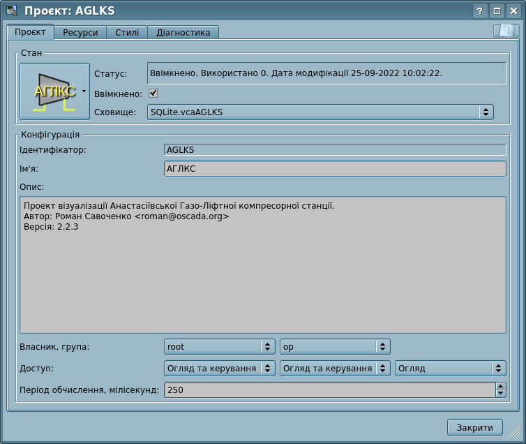 - "Проєкт" — Операції над проєктами.