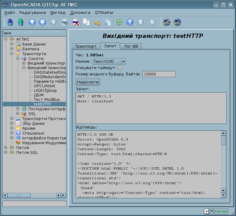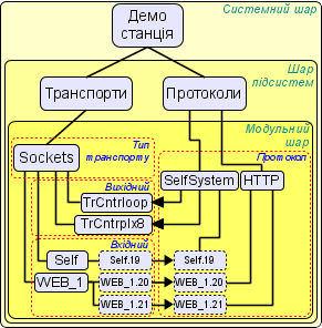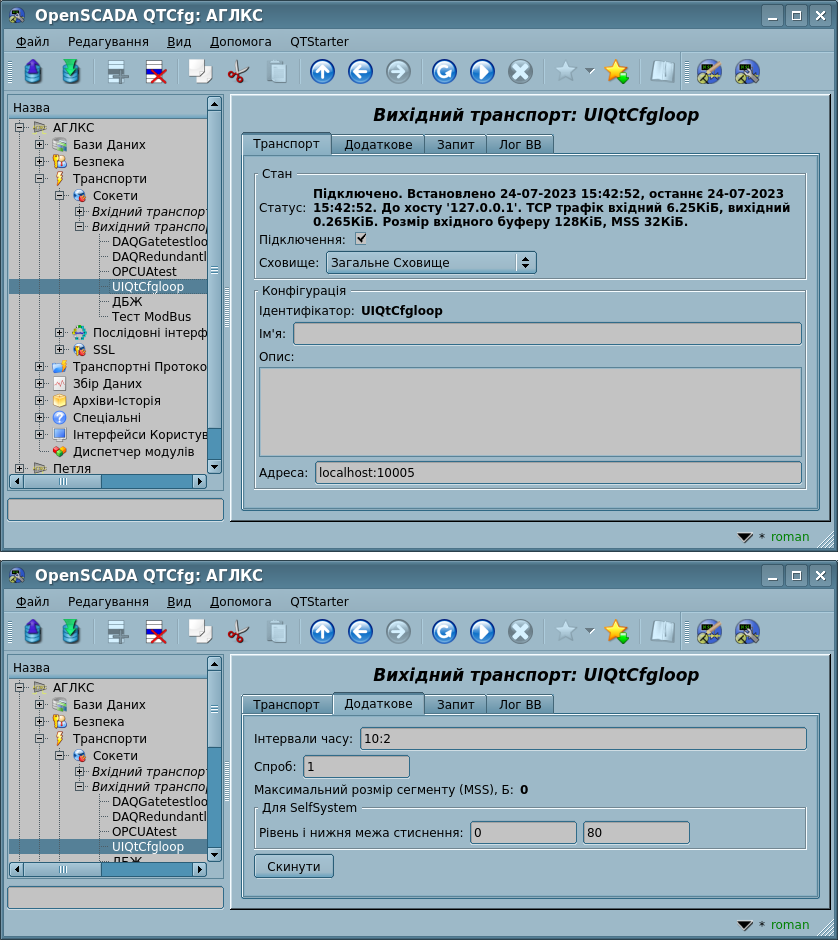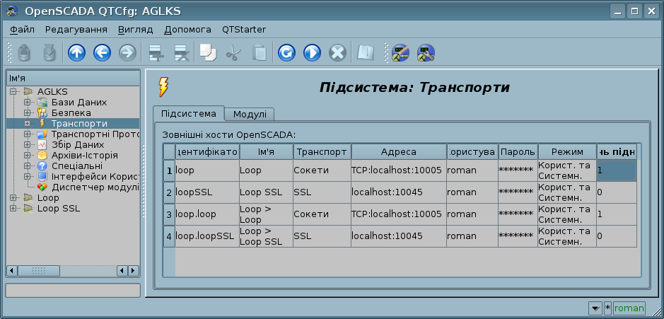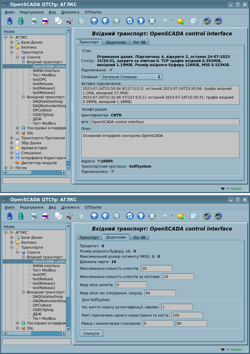 Оскільки OpenSCADA є високо-масштабованою то підтримка комунікацій має бути достатньо гнучкою, для чого вона реалізована у підсистемах "Транспорти" та "Транспортні протоколи" (Рис.1.6), які є модульними.