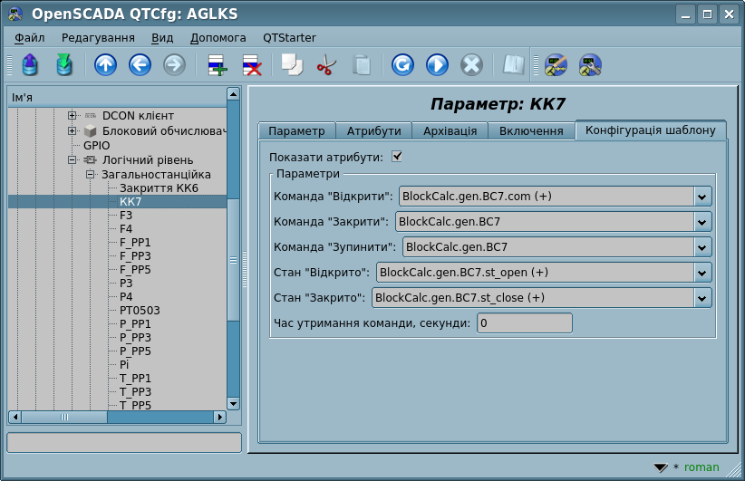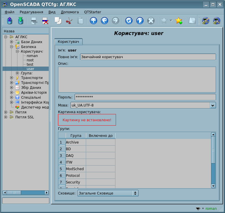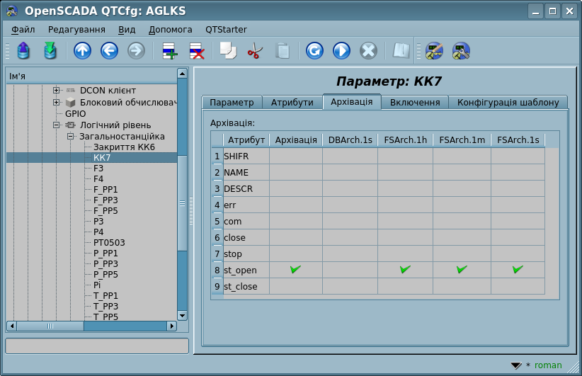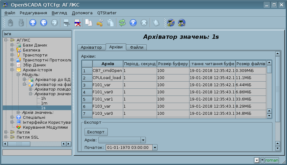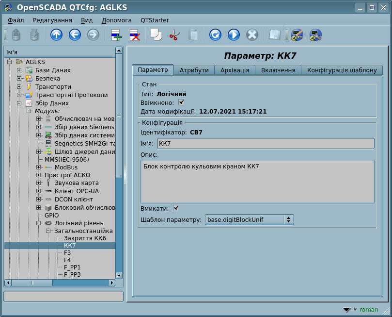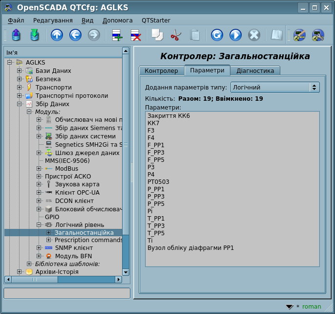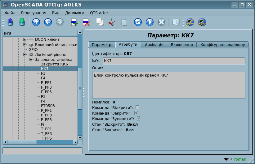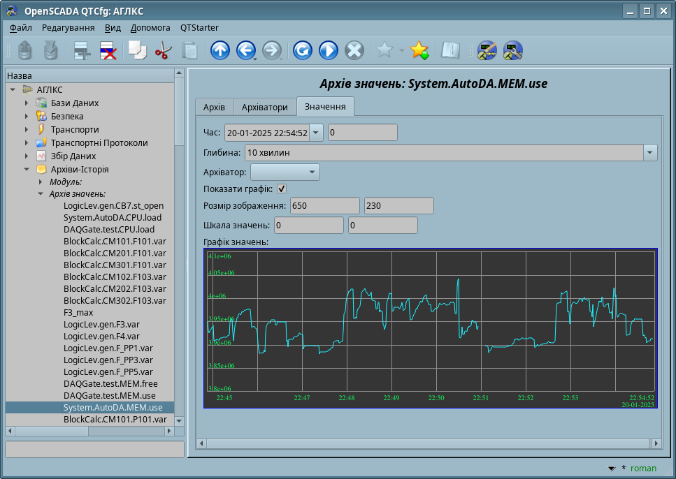 Для візуалізації критичних даних, а також у випадку якщо потрібна висока якість та продуктивність, можна використовувати візуалізацію на основі OpenSCADA, яку сконфігуровано з GUI модулем (Рис.3.5). Така конфігурація дозволяє виконувати натупні функції: