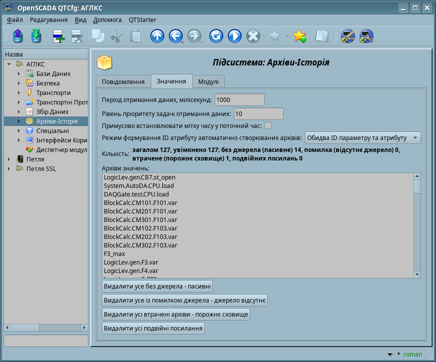 Детально ознайомитися із ключовою підсистемою "Збір даних" та її функціями Ви можете у окремому документі "Збір даних у OpenSCADA".