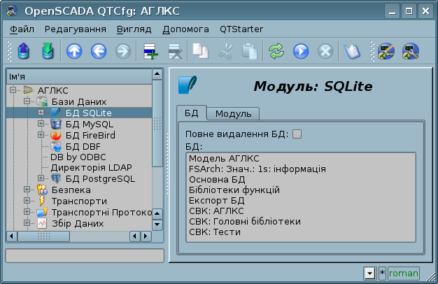 Для зберігання даних програми повсякчасно використовуються бази даних (БД). З метою уніфікації доступу та управління базами даних у OpenSCADA передбачено підсистему "Бази даних" (Рис.1.4). Для забезпечення підтримки різних БД/СУБД підсистему виконано модульною.
