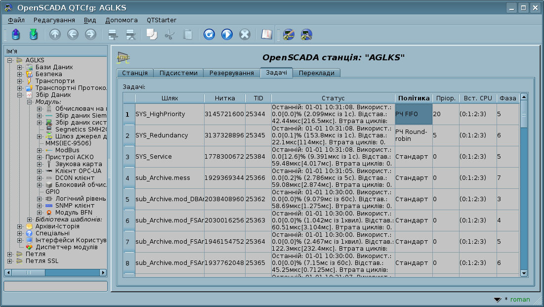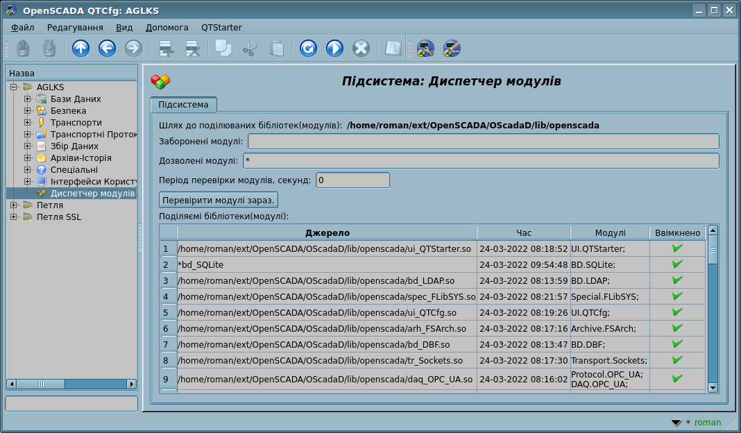 На основі модулів реалізовано наступні функціональні частини OpenSCADA: