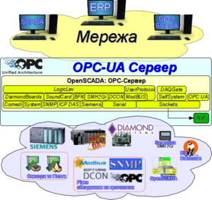 - широкий спектр джерел даних — універсальні, плати DAQ та низькорівневі шини, створені у оточені OpenSCADA.